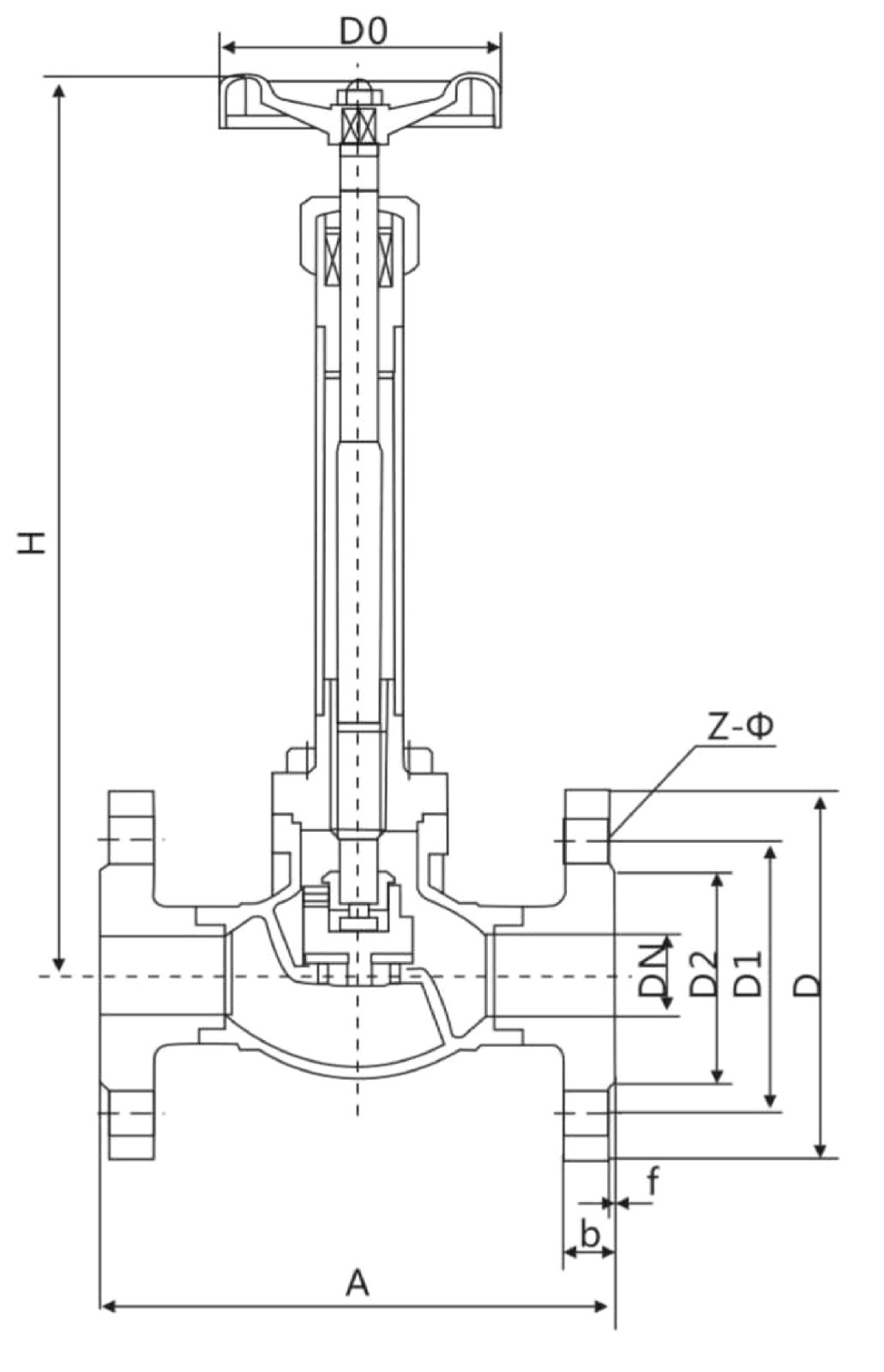 介质流向:由阀瓣下面向上流