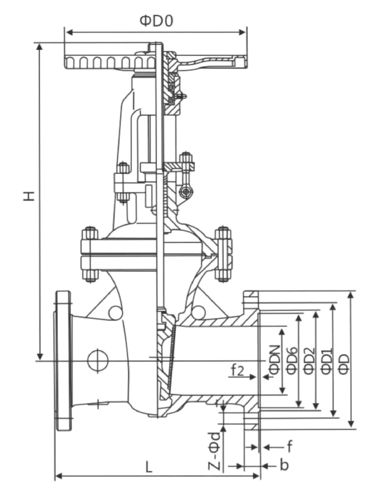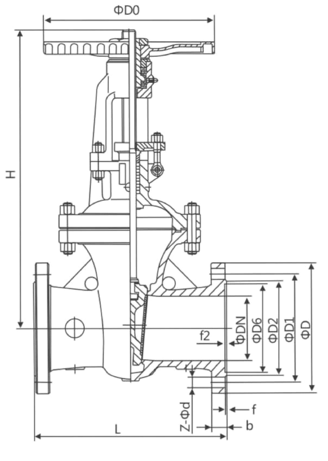 L | D | D1 | D2 | D6 | b-f | f1 | Z-Φd | H | D0 | |||