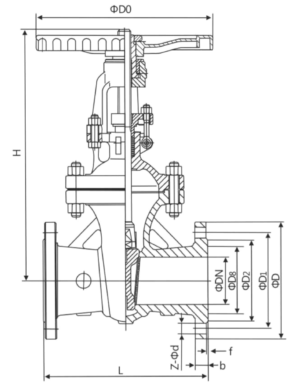 L | D | D1 | D2 | D8 | D6 | b | Z-Φd | H | D0 | |||