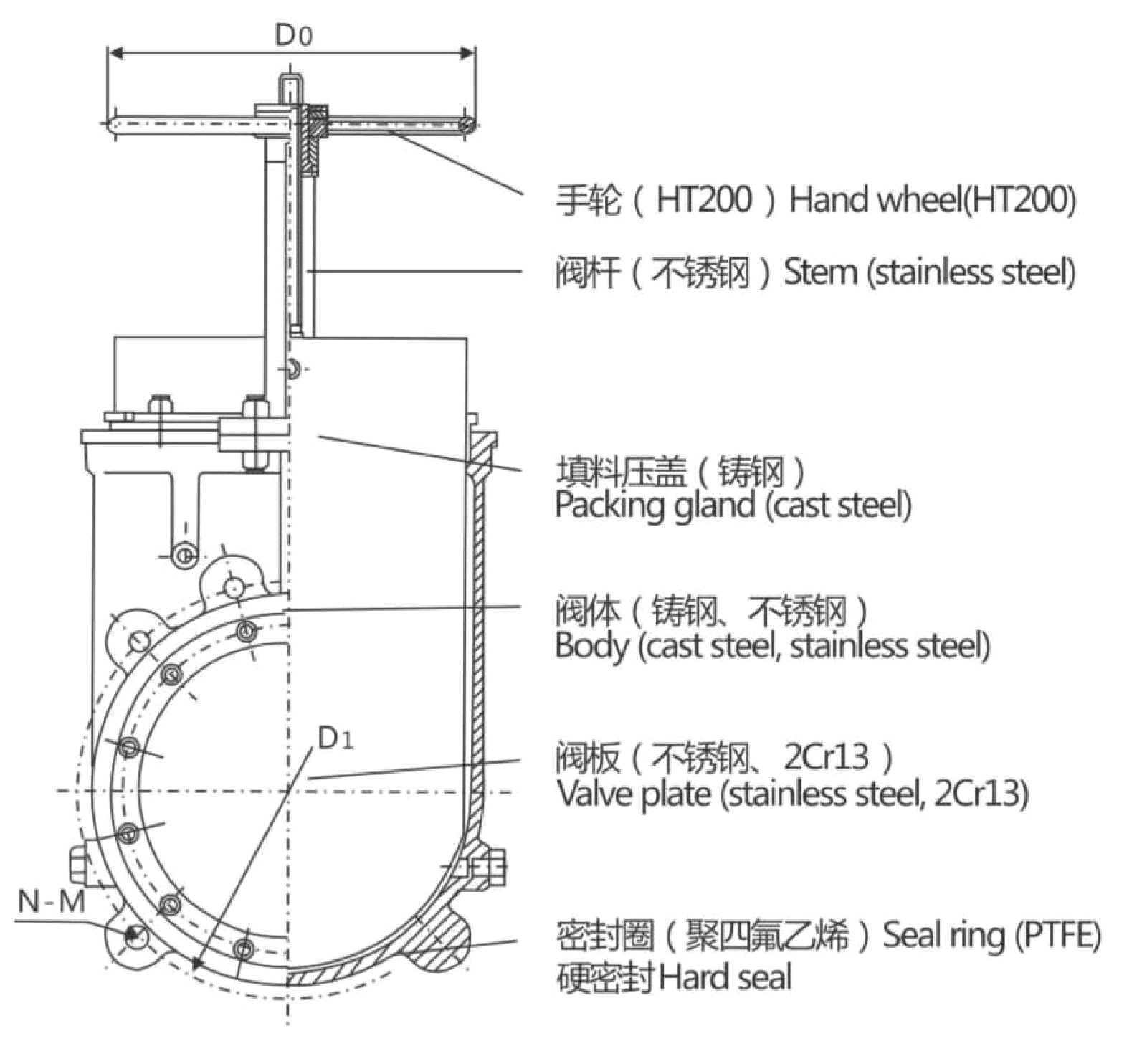 L | D | D1 | D2 | H | N-M | D0 | ||