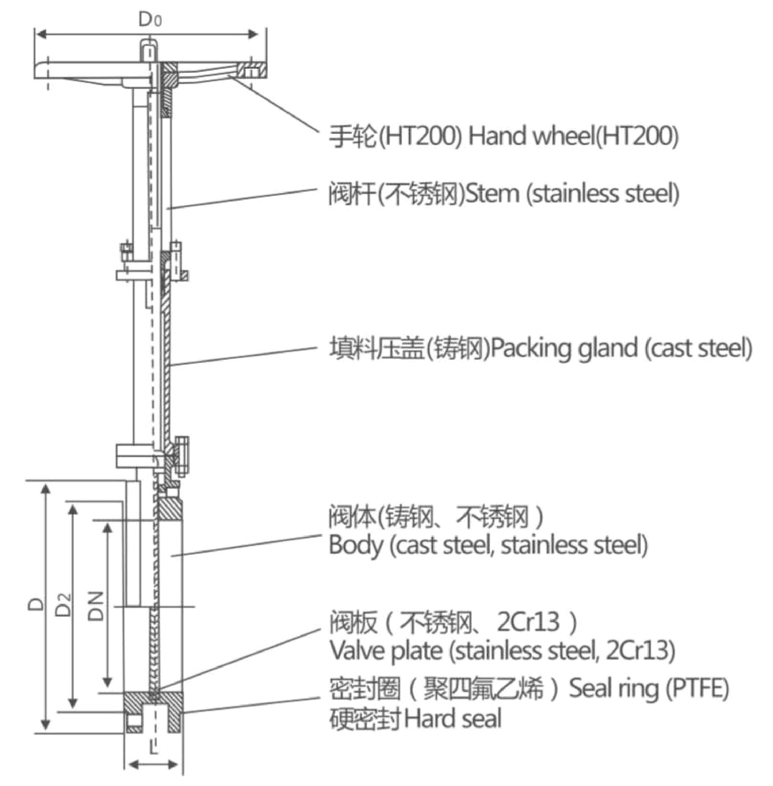 2、阀体、填料涵为精密铸造,其中阀体采用凸缘式整体铸造,不锈钢、硬质合金材质可根据用户需要选用304、316、316L、WCB、2Cr13, 密封 圈采用PTFE 增强聚四氟乙烯材质,耐腐蚀、耐磨损、不沾渣。