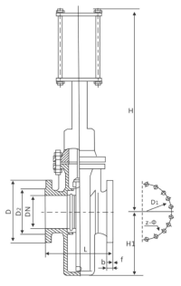 3、本阀独有三重可调式填料结构,确保与阀盖、阀杆密封可靠。法兰连接尺寸按JB/T79, 亦可根据客户要求指定标准生产。