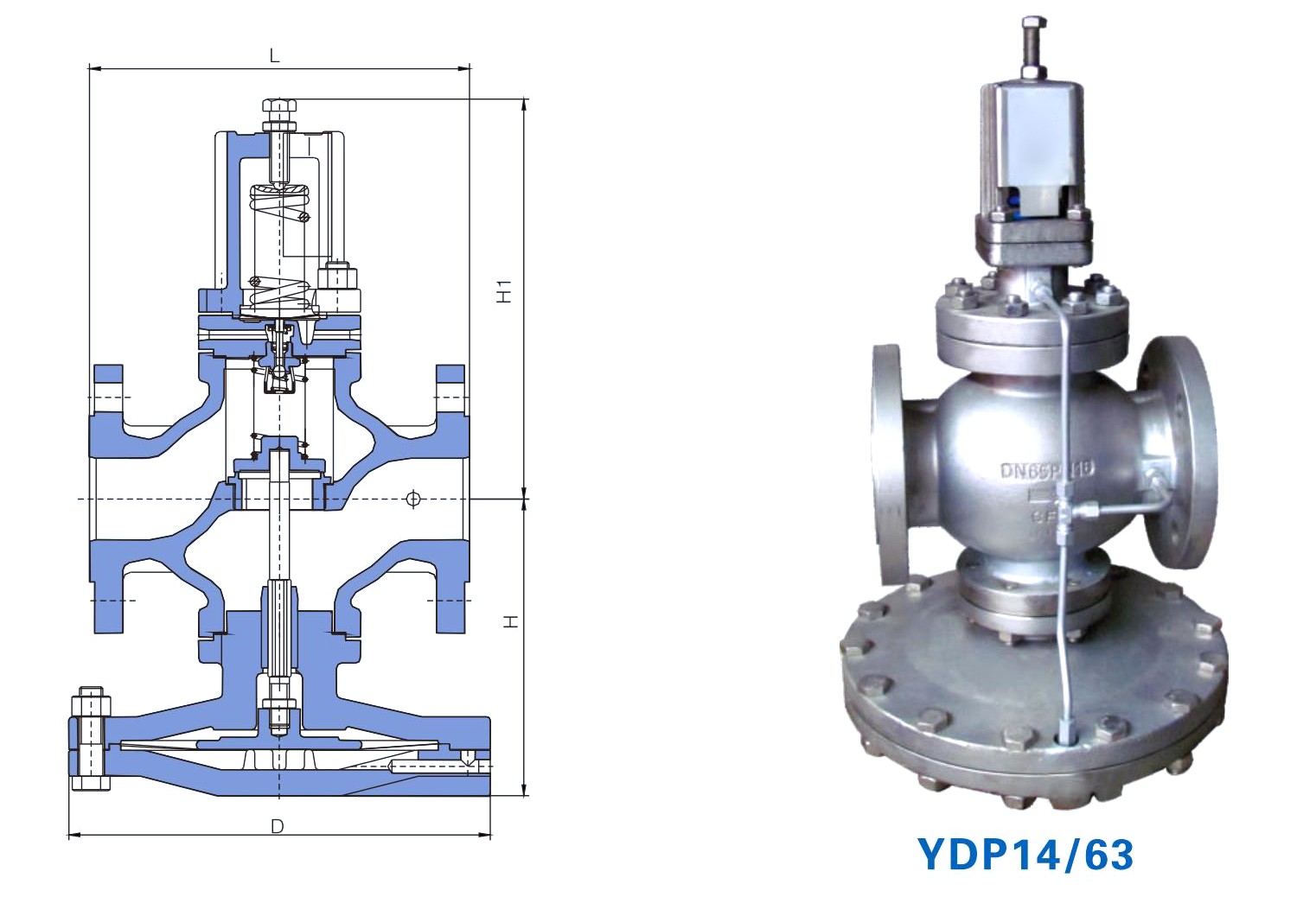YDP143导阀型隔膜式减压阀为铸钢材质阀体、主阀阀芯、导阀阀芯、阀座、及过滤网等 均为不锈钢材质。适用于蒸汽和压缩空气系统。压力调节比可达10:1,控制准确。当压力调节范 围超过10:1时,应采用两个减压阀串联布置。YDP143G 为软密封型号,用于压缩空气系统,或其它工业气体(不适用于氧气)。 YDP143H 为用于高温的型号。