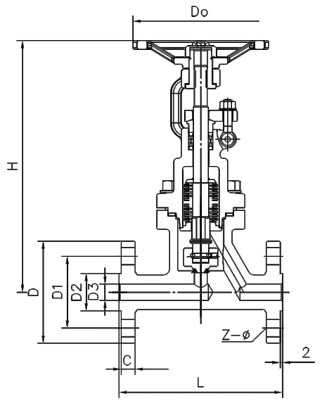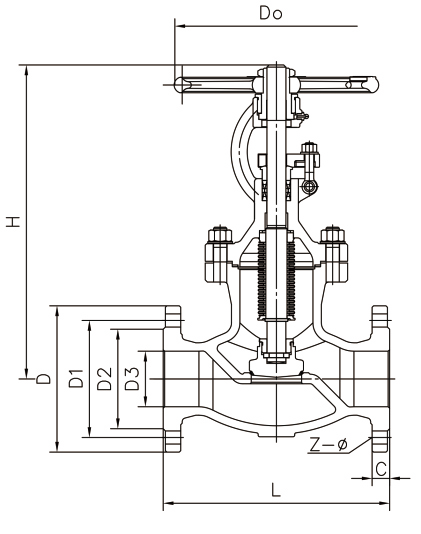 型号Model number | 公称压力Nominal pressure | 口径(DN) Calibre | L法兰 Flange | H | D3 | D2 | D1 | D | DO | C | KV(M3/h) | 重量(kg) Weight |