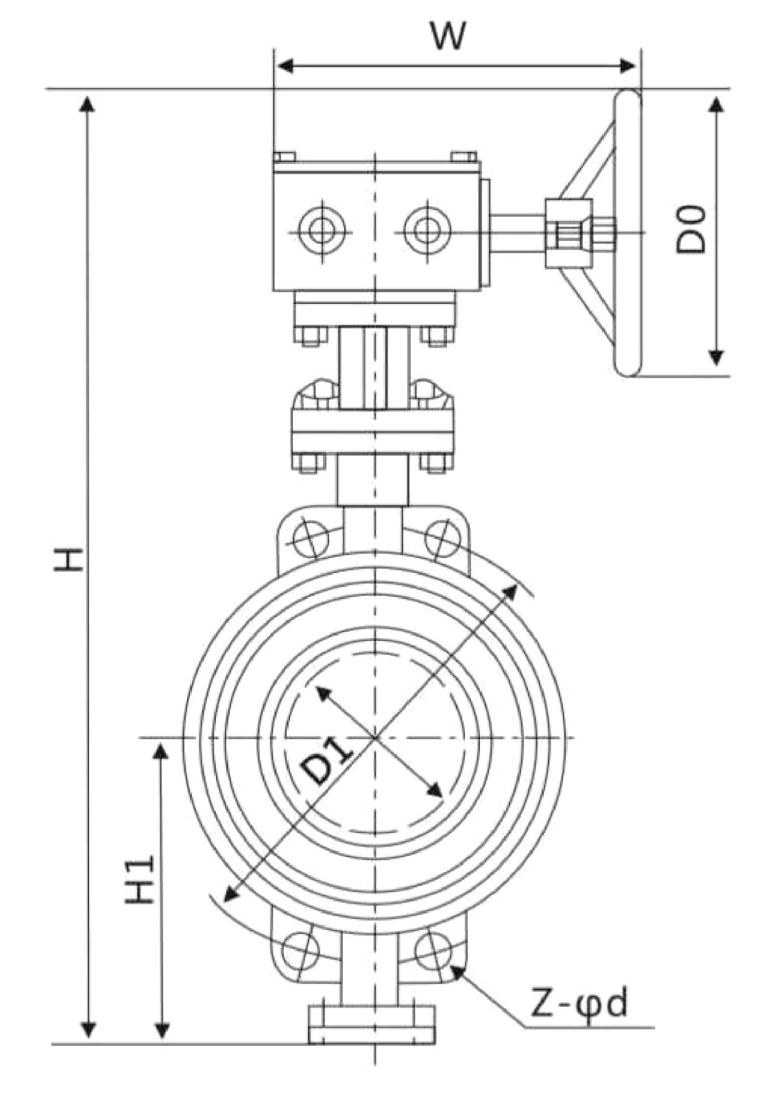 通径DN | L | D1 | D | Z-Φd | H | H1 | W | W1 | D0 |